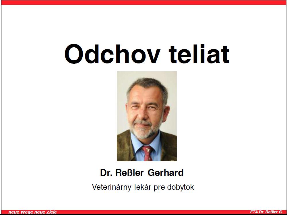 Dr. Gerharda Reßlera, na tému: ODCHOV TELIAT - „dnešné teľa je dojnica zajtrajška“ .(Kliknutím na obrázok si môžete stiahnuť túto prednášku...)